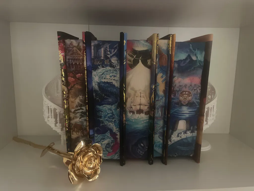 Have you ever looked at someone's bookcase online and been surprised by how pretty it is, this is how this book feels on your shelf. the series makes out a beautiful picture and the details are stunning. I am in love with this 3D printed edges that are sprayed, it adds layer and makes the story come to life even more. I love this series it is what got me back into reading and honestly this is worth every penny. Details are gorgeous and it comes so safely secure in a box and in a bag that I honestly just leave it in the box until I have a spot on my shelf for it!!
